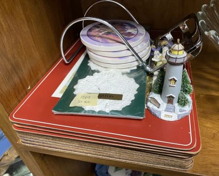 Coasters, Lighthouse Figurine, and Place Mats, Location Right Office 3 Coasters, Lighthouse Figurine, and Place Mats, Location Right Office 3