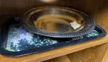 Serving Metal Tray and Silver Plate Bowl, Location Right Office 3 Serving Metal Tray and Silver Plate Bowl, Location Right Office 3