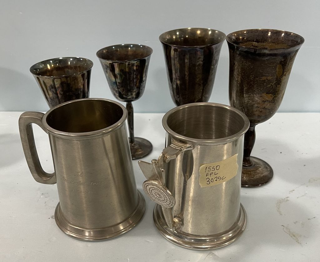 Silver Plate Goblets and two Pewter Mugs Location Front Right Shelves Location Front Right Shelves Silver Plate Goblets and two Pewter Mugs Location Front Right Shelves Location Front Right Shelves