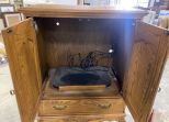 Two Door Oak TV Media Cabinet, Queen Anne style, oak finish, footed, 54"h., 35"w. Location Row 3 Two Door Oak TV Media Cabinet, Queen Anne style, oak finish, footed, 54"h., 35"w. Location Row 3