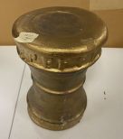 Mexico Gold Painted Ceramic Pedestal, Location Left Back Metal Shelves Mexico Gold Painted Ceramic Pedestal, Location Left Back Metal Shelves