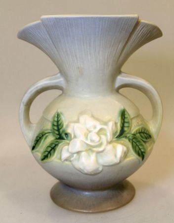 #684-8 Roseville Gardenia double handled vase.; 8 1/4" h. #684-8 Roseville Gardenia double handled vase.; 8 1/4" h.