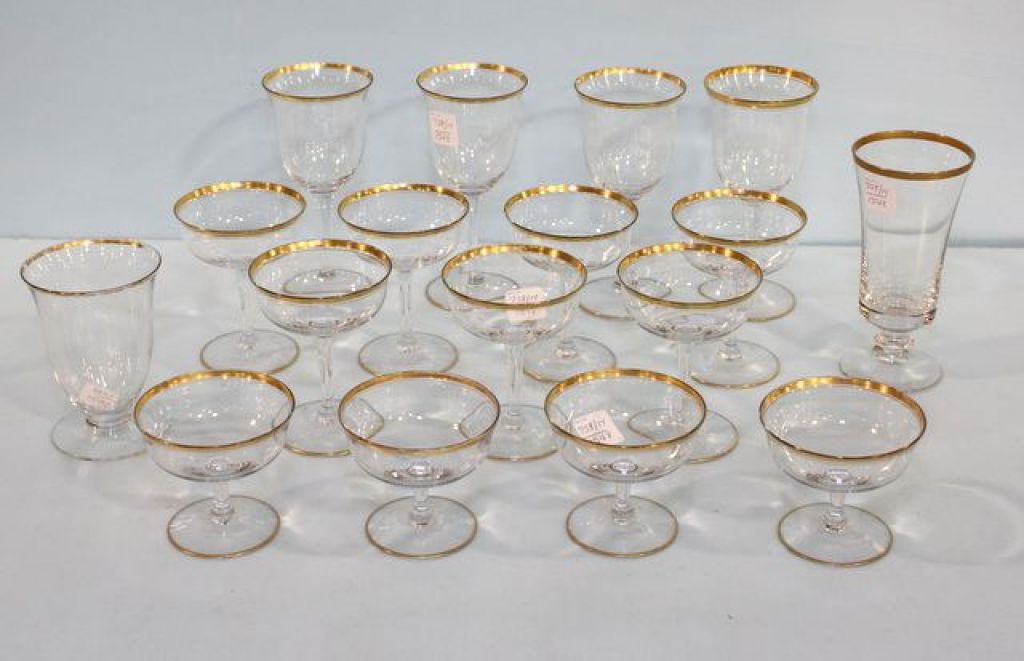 Four wine goblets, seven champagne glasses, four dessert cups, one water goblet & one small water goblet Four wine goblets, seven champagne glasses, four dessert cups, one water goblet & one small water goblet