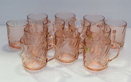 748 Set of Twelve Rosaline Pink Depression Mugs