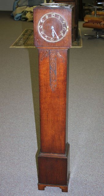 Grandmother's Clock; missing glass cover for face; has key and pendulum Grandmother's Clock; missing glass cover for face; has key and pendulum