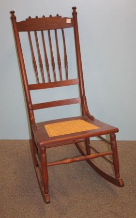 Victorian Oak Rocker with Cane Seat; 16" d., 17 1/2" w., 37" h. Victorian Oak Rocker with Cane Seat; 16" d., 17 1/2" w., 37" h.