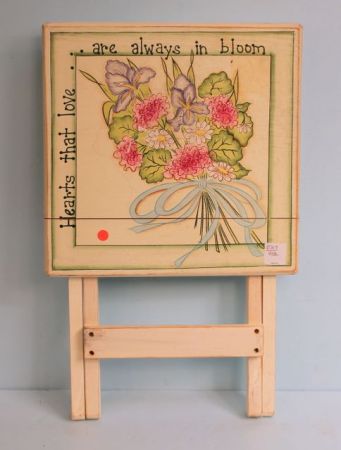 Wood Stool Painted Always in Blossom; top 11 1/2" square Wood Stool Painted Always in Blossom; top 11 1/2" square