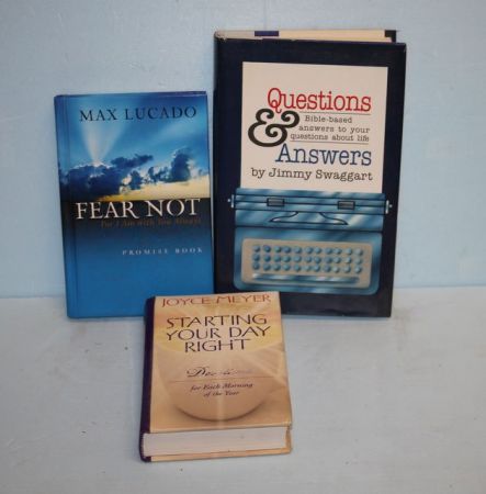 Group of Three Inspirational Books; Joyce Meyer "Starting Your Day Right", Max Lucado "Fear Not", Jimmy Swaggart "Answers" Group of Three Inspirational Books; Joyce Meyer "Starting Your Day Right", Max Lucado "Fear Not", Jimmy Swaggart "Answers"
