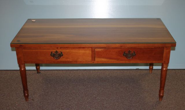 Glass Top Maple Coffee Table with Two Drawers; 41 1/2" w., 20" d., 18 1/2" h. Glass Top Maple Coffee Table with Two Drawers; 41 1/2" w., 20" d., 18 1/2" h.