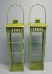 Two Metal Yard Lanterns Painted Green; 21" h., 6 1/2" square base Two Metal Yard Lanterns Painted Green; 21" h., 6 1/2" square base