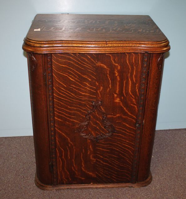 Victorian Oak Sewing Cabinet with Machine; 23 1/2" w., 18" d.; 30" h. Victorian Oak Sewing Cabinet with Machine; 23 1/2" w., 18" d.; 30" h.