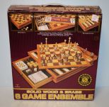Six Game Ensemble, solid wood and brass; backgammon, checkers, dominoes, cribbage set and playing cards Six Game Ensemble, solid wood and brass; backgammon, checkers, dominoes, cribbage set and playing cards