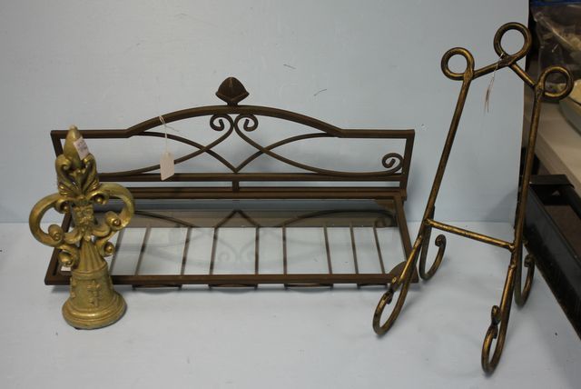Iron Shelf with Glass22" w., 8" h. and a Resin Gold Fleur-De-Lis 11" h., 5 1/2" w. Iron Shelf with Glass22" w., 8" h. and a Resin Gold Fleur-De-Lis 11" h., 5 1/2" w.