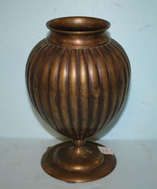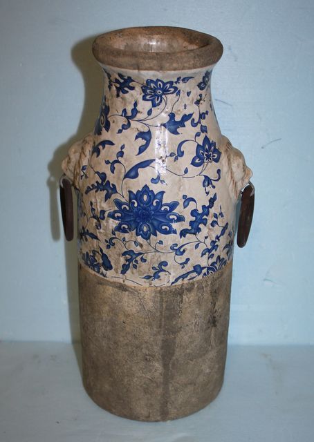 486 Concrete Painted Two Handle Decorative Vase along with a Brass Vase