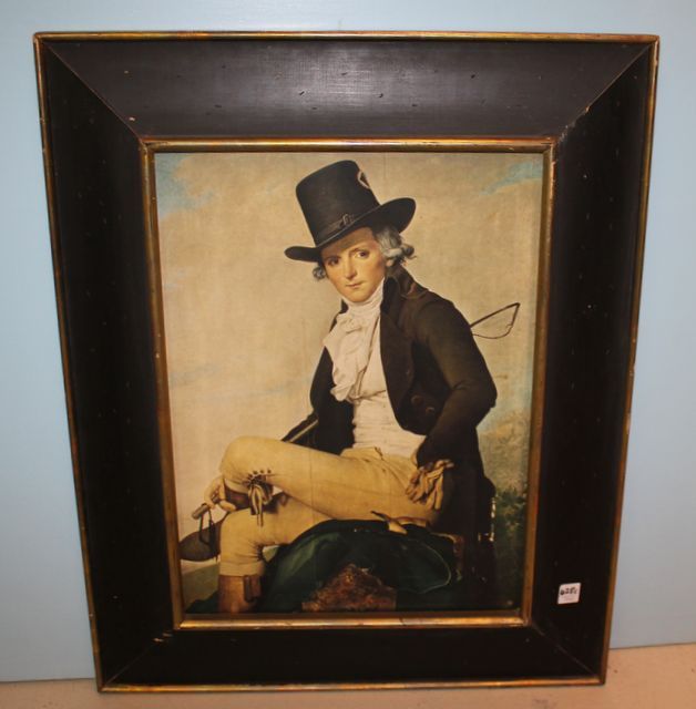 Print of Gentleman in Riding Habit, seated; framed in black wood frame 24" w., 30" h. Print of Gentleman in Riding Habit, seated; framed in black wood frame 24" w., 30" h.