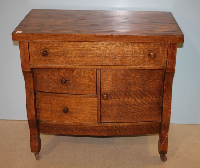 Oak Washstand; 32" l., 30" h., 18" d. Oak Washstand; 32" l., 30" h., 18" d.