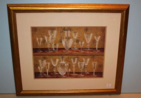 Print of Etched Glass Decanters and Glasses; 27" w., 23" h. Print of Etched Glass Decanters and Glasses; 27" w., 23" h.