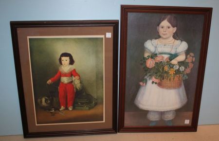 Two Contemporary Prints, one of young girl with basket 10" w., 29" h., one of young boy 21 1/2" w., 26 1/2" h. Two Contemporary Prints, one of young girl with basket 10" w., 29" h., one of young boy 21 1/2" w., 26 1/2" h.