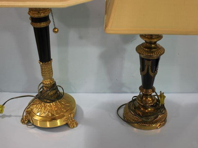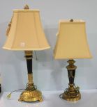 Two Decorative Brass and Metal Lamps, urn shape 24 1/2" h., candle form with paw feet 30" h., including finial Two Decorative Brass and Metal Lamps, urn shape 24 1/2" h., candle form with paw feet 30" h., including finial