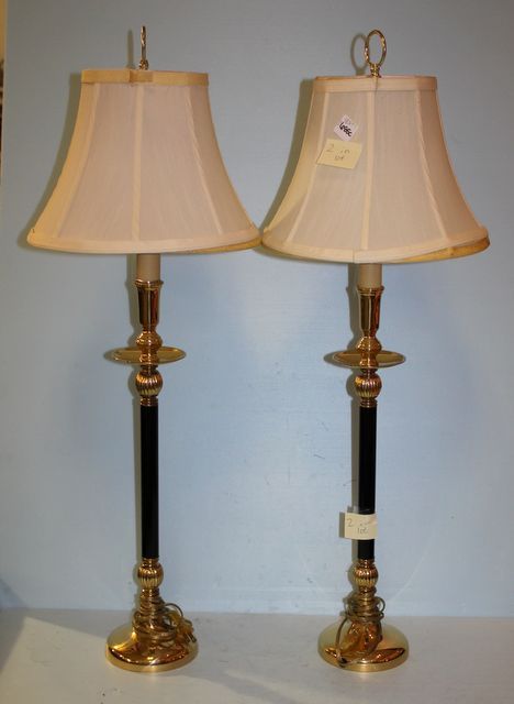 Contemporary Brass and Metal Candlestick Form Lamps; 35" h. Contemporary Brass and Metal Candlestick Form Lamps; 35" h.