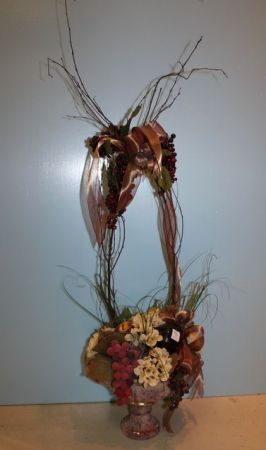 Painted Gold Urn with Fruit and Flowers; 32" h. Painted Gold Urn with Fruit and Flowers; 32" h.