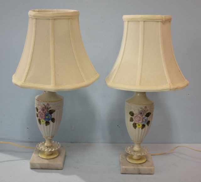 652 Pair of Made in Italy Porcelain Lamps on Marble Bases