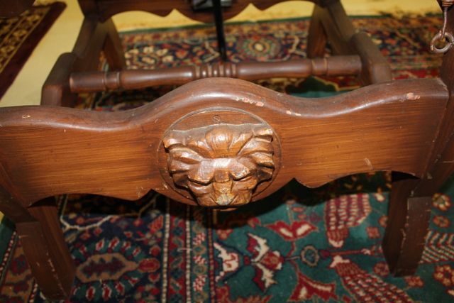 Unusual Reclining Dentist Chair with Carved Iron Heads; 49" h., 26" w., 26" d. Unusual Reclining Dentist Chair with Carved Iron Heads; 49" h., 26" w., 26" d.