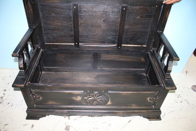 French High Back Hall Bench with Lift Seat; 52" l., 22' d., 60" h. French High Back Hall Bench with Lift Seat; 52" l., 22' d., 60" h.