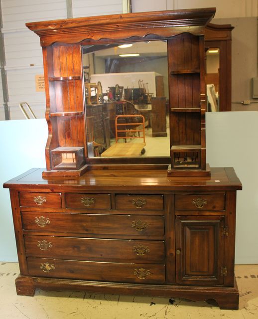 Pine Dresser with Mirrored Hutch Top; 60 1/2" w., 19" d., 75" h. Pine Dresser with Mirrored Hutch Top; 60 1/2" w., 19" d., 75" h.
