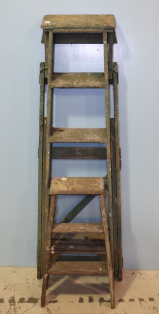 Two Wooden Step Ladders, one 26" h., one 54" h. Two Wooden Step Ladders, one 26" h., one 54" h.