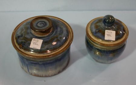 711 Two Blue Pottery Covered Jars
