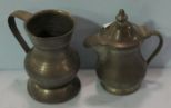 London Pewter Mug 5", old Essex pewter 6"h. London Pewter Mug 5", old Essex pewter 6"h.