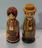 Pair Wood Boxes, heads come off, hand painted; 8"h. Pair Wood Boxes, heads come off, hand painted; 8"h.