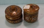 Two Wood Carved Covered Boxes, hand painted; 2 1/2"dia., 2"h. Two Wood Carved Covered Boxes, hand painted; 2 1/2"dia., 2"h.