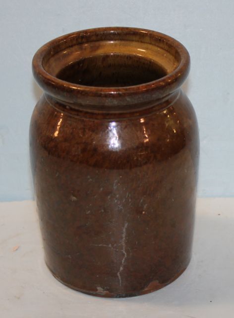 Antique Crock w/glaze finish; 6 1/2"h., 4"dia. Antique Crock w/glaze finish; 6 1/2"h., 4"dia.