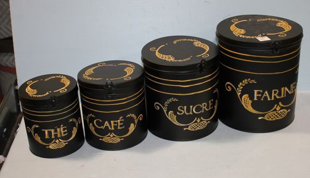Set of Canisters, made in China; 9 1/2"-6 1/4"h. Set of Canisters, made in China; 9 1/2"-6 1/4"h.