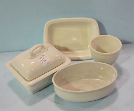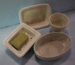 Grouping of Porcelain. English soap dish, covered soap dish, gravy boat w/tray, two small dishes Grouping of Porcelain. English soap dish, covered soap dish, gravy boat w/tray, two small dishes
