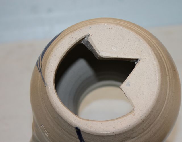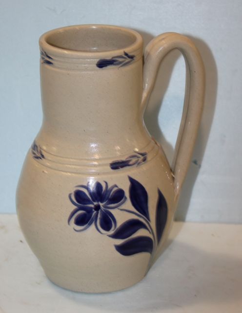 Williamsburg Pottery Pitcher, hand turned, hand painted; holes drilled and bottom busted. Williamsburg Pottery Pitcher, hand turned, hand painted; holes drilled and bottom busted.