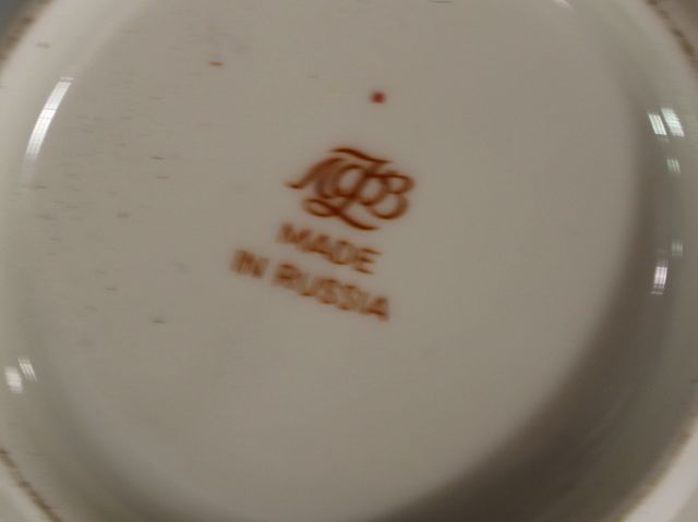 Two Cups and Saucers, one cobalt blue marked in red Made in Russia Two Cups and Saucers, one cobalt blue marked in red Made in Russia
