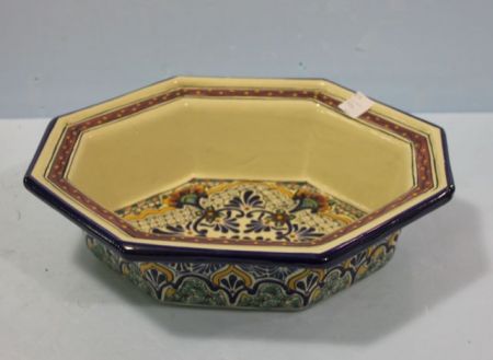 Contemporary Cookworks Dish, eight sided, hand painted; 14"w., 4"h. Contemporary Cookworks Dish, eight sided, hand painted; 14"w., 4"h.