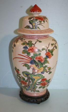 Contemporary Porcelain Ginger Jar on stand; 16"h. Contemporary Porcelain Ginger Jar on stand; 16"h.