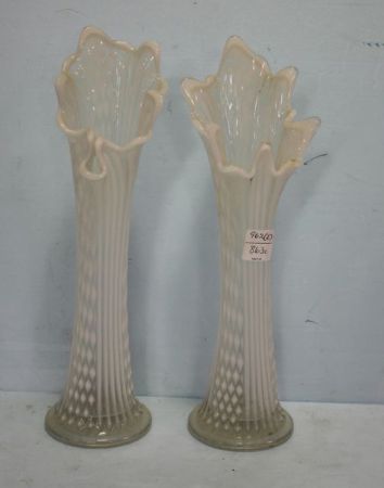 Pair White Overlay Trumpet Vases. 12 1/2"h. Pair White Overlay Trumpet Vases. 12 1/2"h.