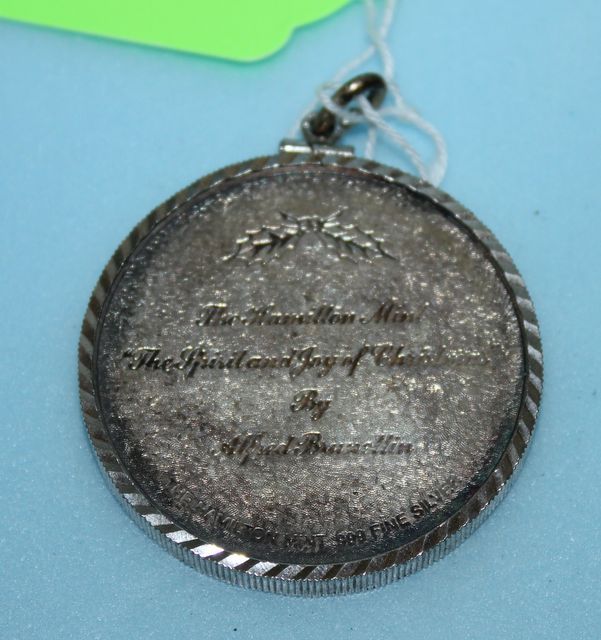 Hamilton Mint .999 Silver Pendant. The Spirit and Joy of Christmas; 1 1/2" dia. Hamilton Mint .999 Silver Pendant. The Spirit and Joy of Christmas; 1 1/2" dia.
