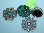 Four Costume Jewelry Pins One Monet; 1 1/2"dia. Four Costume Jewelry Pins One Monet; 1 1/2"dia.