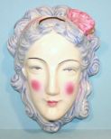 Porcelain Painted Face Wall Hanger/Match Holder. 4 1/2" w. by 6 1/2" h. Porcelain Painted Face Wall Hanger/Match Holder. 4 1/2" w. by 6 1/2" h.