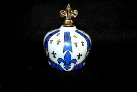 114 White Blue and Gold Perfume, marked on bottom Boi Bleil 1648-1715, Porcelain Limoge Description