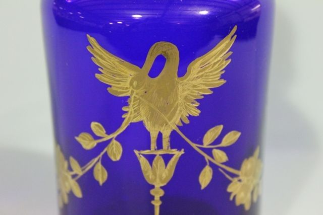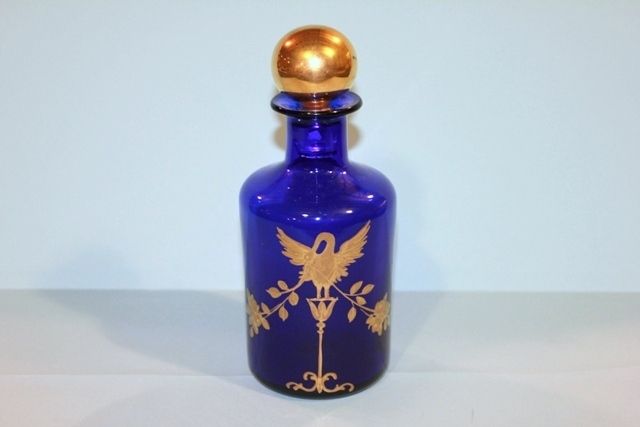 115 Cobalt Blue Container/Perfume with Gold Accent Paint and Gold Stopper Description