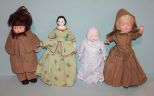 Porcelain Face Baby Doll, porcelain face girl doll and two resin face dolls, each 12" h. Porcelain Face Baby Doll, porcelain face girl doll and two resin face dolls, each 12" h.