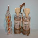 134 1950's Double Bottle Set in Brass Stand and Painted 1960's Bottle Description