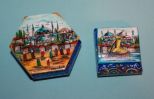 Two Hand-painted Camel Bone Trinket Boxes, marked Istanbul, 1 1/2" w., 2" w. Two Hand-painted Camel Bone Trinket Boxes, marked Istanbul, 1 1/2" w., 2" w.
